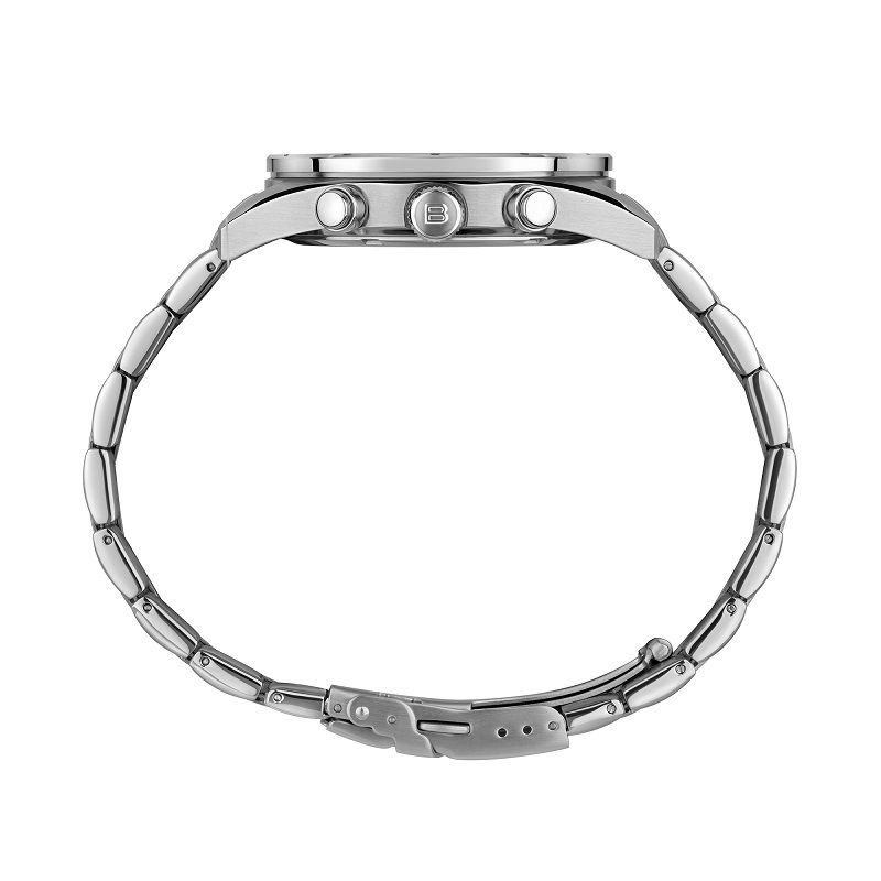 Il cronografo Captain si distingue per il quadrante moss green con lavorazione sunray, arricchito da indici con trattamento luminous e sfere silver che garantiscono massima leggibilità. La lunetta in acciaio presenta indici incisi che ne esaltano il design elegante, mentre il datario, posizionato tra le ore 4 e 5, aggiunge un tocco di funzionalità.
