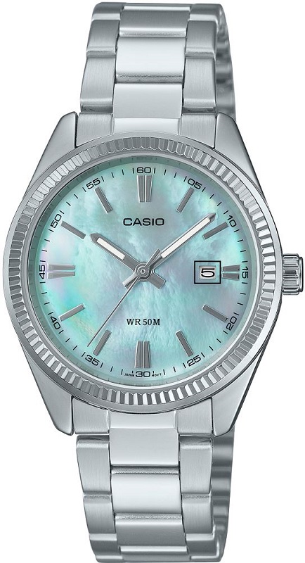 Il classico orologio analogico in metallo si veste di splendidi colori. Il quadrante in madreperla conferisce un aspetto apparentemente semplice e lussuoso. Il datario di facile lettura a ore 3 aggiunge un tocco di praticità in più. L'impermeabilità fino a 50 metri ti libera da ogni preoccupazione, anche nei giorni di pioggia. Attenzione: differenze individuali nei prodotti. A causa delle caratteristiche della madreperla, ci sono differenze individuali nel motivo e nella tonalità di colore per ogni orologio.