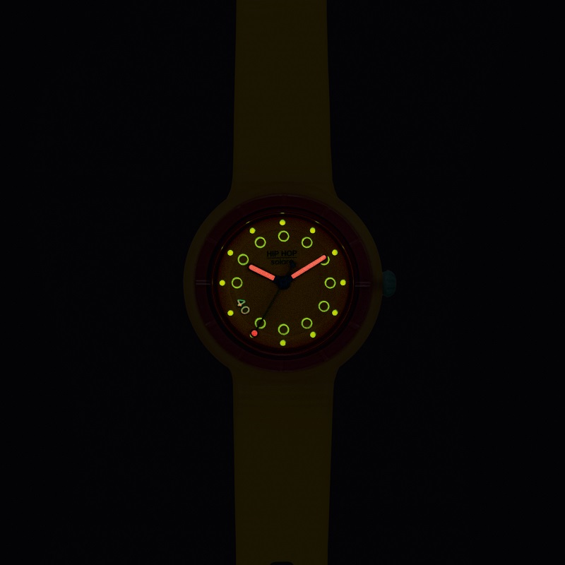 Il modello Hero.DOT_Solar è il nuovo capitolo nella storia di Hip Hop, dove design e sostenibilità si incontrano in perfetto equilibrio. Parte della collezione celebrativa Living in Color, questo modello celebrativo è stato disegnato attualizzando codici stilistici in trend, giocando con trasparenze soft-touch e tonalità audaci per un effetto moderno e distintivo. Dotato di un movimento solare, Hero.DOT_Solar si ricarica con luce naturale e artificiale, trasformandola in energia per un’alimentazione più responsabile. Un accessorio che scandisce il tempo con consapevolezza, abbracciando un futuro più sostenibile senza rinunciare allo stile. Il cinturino in silicone eco-friendly assicura una vestibilità morbida e confortevole, mentre la nuova chiusura .DOT in acciaio aggiunge un tocco di eleganza. Sul quadrante, il numero 40 con dettagli luminous segna il filo conduttore della collezione, mentre il fondello inciso rende ogni pezzo un’edizione speciale. Disponibile in due varianti dal finish soft, Giallo Sorbetto e Rosa Bubble, Hero.DOT_Solar è il nuovo modo di indossare il tempo con colore, energia e uno sguardo rivolto al futuro.