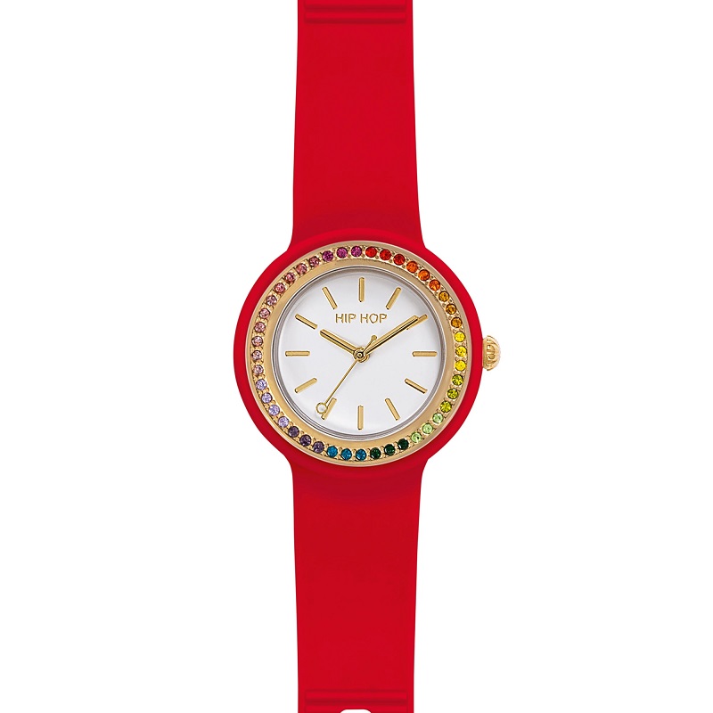 Collezione: "HERO DOT" - Modello: BEZEL GLAM - ROSSO - CRISTALLI MULTICOLOR ARCOBALENO - HWU1307 - ø cassa 34 mm - SOLO TEMPO