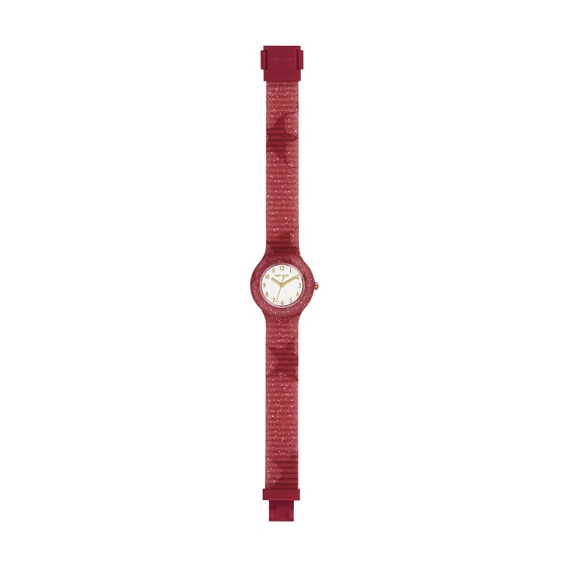L'orologio Hip Hop Lace è realizzato con i pregiati ed esclusivi pizzi del Ricamificio Carlo Canziani. Il tessuto, scelto in questo caso nella variante rossa viene accoppiato al silicone rosso glitterato, che ne preserva colore e fattura e rende l'orologio un accessorio fashion super chic.