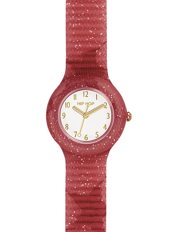 L'orologio Hip Hop Lace è realizzato con i pregiati ed esclusivi pizzi del Ricamificio Carlo Canziani. Il tessuto, scelto in questo caso nella variante rossa viene accoppiato al silicone rosso glitterato, che ne preserva colore e fattura e rende l'orologio un accessorio fashion super chic.