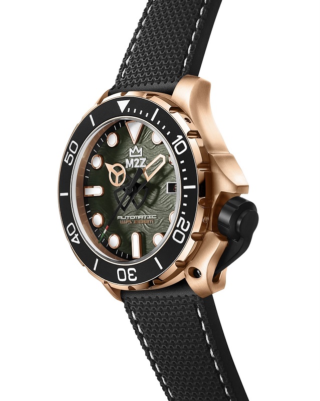Descrizione: Diametro cassa: 46.00 mm - Spessore cassa: 17.00 mm - Materiale cassa: Monoblocco acciaio Inox 316L - Vetro: Zaffiro - Placcatura color oro rosa: Grado A IPRG (0.6 mic tic +20%, pvd) - Cinturino: Polimero anallergico nero - FKM - Water resistant: 20 atm - Corona: Corona a vite, con doppia guarnizione, con proteggi corona estraibile in alluminio anodizzato nero - Movimento: Movimento automatico 3HD Seiko NH35, con riserva di carica 41 ore - Lunetta: Lunetta girevole unidirezionale in senso anti orario, con inserto in silicone.