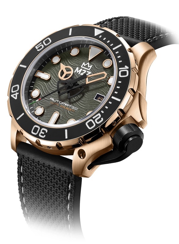 Descrizione: Diametro cassa: 46.00 mm - Spessore cassa: 17.00 mm - Materiale cassa: Monoblocco acciaio Inox 316L - Vetro: Zaffiro - Placcatura color oro rosa: Grado A IPRG (0.6 mic tic +20%, pvd) - Cinturino: Polimero anallergico nero - FKM - Water resistant: 20 atm - Corona: Corona a vite, con doppia guarnizione, con proteggi corona estraibile in alluminio anodizzato nero - Movimento: Movimento automatico 3HD Seiko NH35, con riserva di carica 41 ore - Lunetta: Lunetta girevole unidirezionale in senso anti orario, con inserto in silicone.