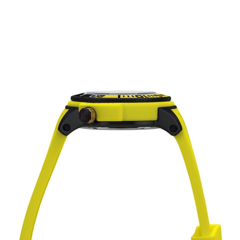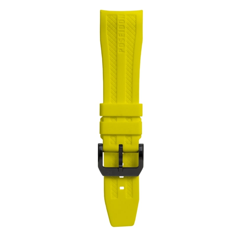 Orologio Diver con cassa in acciaio satinato, con dettagli esterni in silicone giallo e trattamento Ip black nero, diametro 45 mm. Quadrante subacqueo nero ad elevata visibilità, lunetta girevole unidirezionale arancione/nero e corona a vite, a ore 4. Indici e lancette luminosi al buio. Movimento giapponese al quarzo Miyota Citizen, solo tempo con data. Vetro minerale saffire coated, con trattamento del vetro atto ad aumentarne resistenza a urti e graffi, impermeabilità e anti-riflesso. Cinturino in silicone giallo, personalizzato "Poseidon" e fibbia in acciaio Kienzle. Impermeabilità fino a 15 ATM - Peso 140 gr.