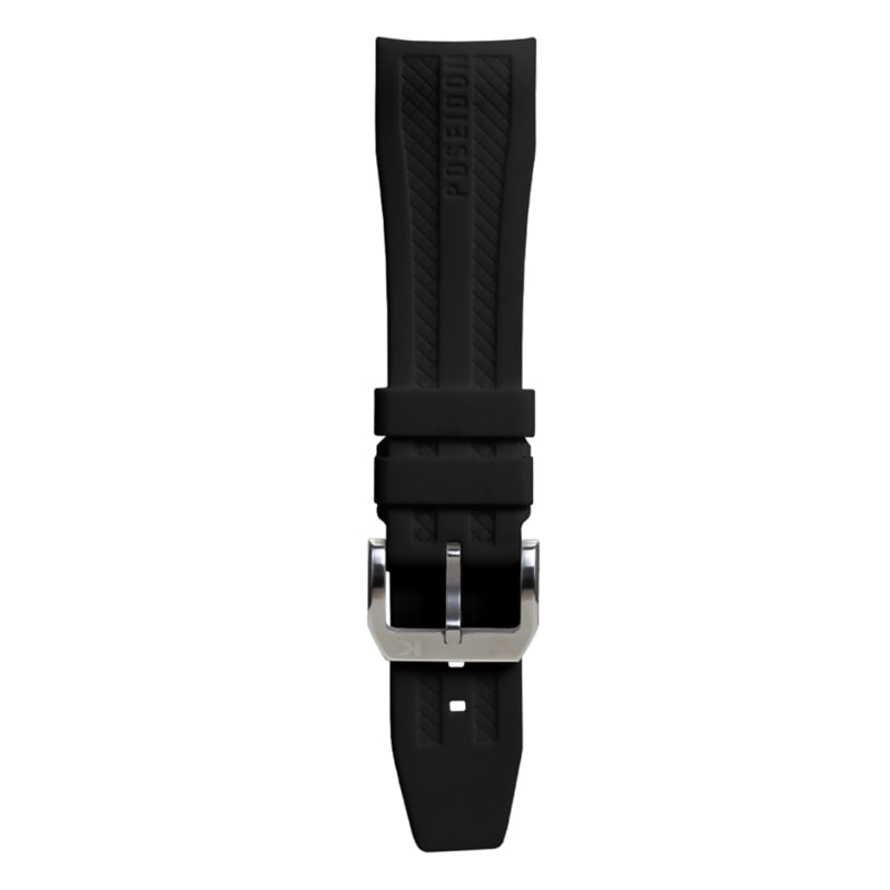 Orologio Diver con cassa in acciaio satinato e dettagli esterni in silicone neri, diametro 45 mm. Quadrante subacqueo ad elevata visibilità, lunetta girevole unidirezionale rossa/nera e corona a vite, a ore 4. Indici e lancette luminosi al buio. Movimento giapponese al quarzo Miyota Citizen, solo tempo con data. Vetro minerale saffire coated, con trattamento del vetro atto ad aumentarne resistenza a urti e graffi, impermeabilità e anti-riflesso. Cinturino in silicone nero, personalizzato "Poseidon" e fibbia Kienzle in acciaio inox. Impermeabilità fino a 15 ATM - Peso 140 gr.