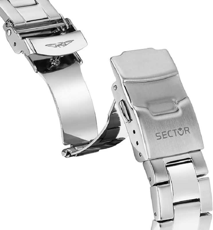 OROLOGIO SECTOR 230 - R3273661049 - Genere : Uomo - Modello: Cronografo, con Data - Materiale e finitura cassa: Acciaio inox - Misura cassa: 43 mm - Spessore cassa: 12,00 - Finitura cassa: Lucido, Satinato - Colore quadrante: Bianco, con lancette e indici lumosi al buio - Colore cassa: Acciaio inox - Vetro: minerale - Lunetta: Nera, con scala tachimetrica - Materiale bracciale: acciaio inox - Chiusura: Fibbia Diver con blocco sicurezza - Water resistant: 10 atm