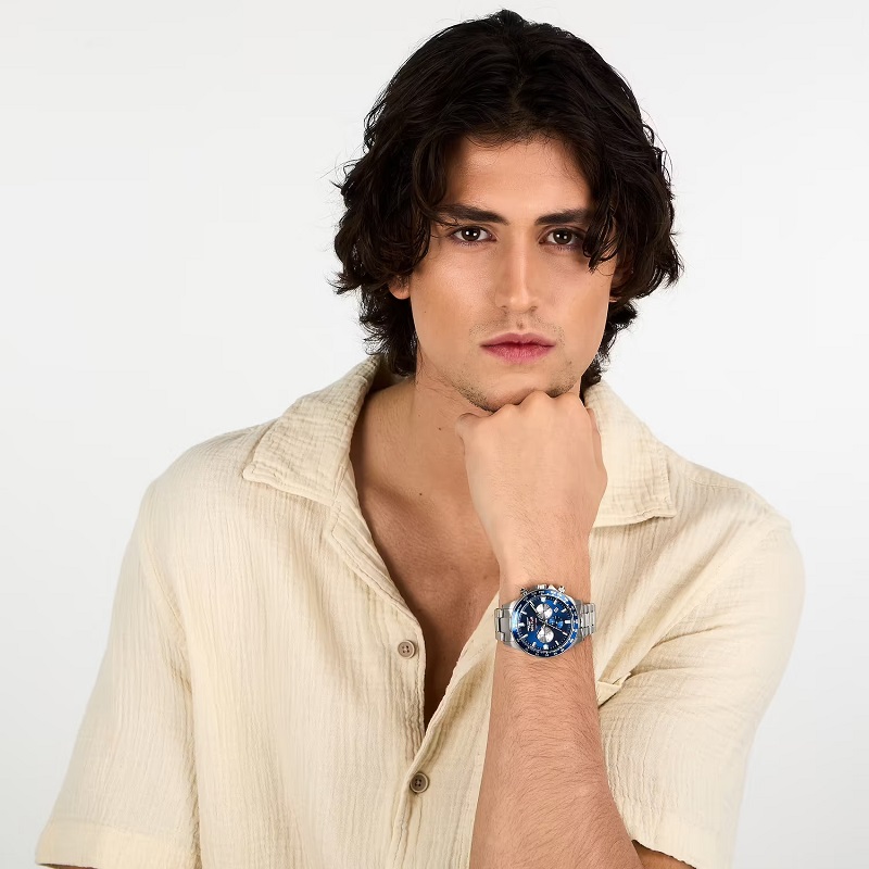 OROLOGIO SECTOR 230 - R3273661051 - Genere : Uomo - Modello: Cronografo giapponese, con Data - Materiale e finitura cassa: Acciaio inox - Misura cassa: 43 mm - Spessore cassa: 12,00 - Finitura cassa: Lucido, Satinato - Colore quadrante: Blu, con lancette e indici lumosi al buio - Colore cassa: Acciaio inox - Vetro: minerale - Lunetta: Blu, con scala tachimetrica - Materiale bracciale: acciaio inox - Chiusura: Fibbia diver c/pulsanti e blocco di sicurezza - Water resistant: 10 atm