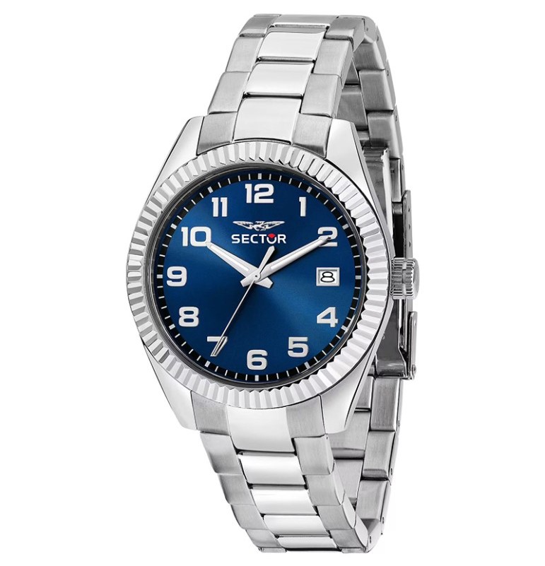OROLOGIO SECTOR 240 - R3253240019 - Genere : Unisex - Colore Quadrante: Blu, con numeri in metallo - Lancette luminose al buio - Materiale e finitura cassa: Acciaio inox, lucido e satinato - Misura cassa: 39 mm - Spessore cassa: 10 mm - Lunetta: zigrinata in acciaio - Vetro: Minerale - Materiale cinturino: Acciaio - Chiusura: Fibbia diver con blocco di sicurezza - Movimento: Quarzo Giapponese, Solo Tempo, con Data - Water resistant: 5 atm