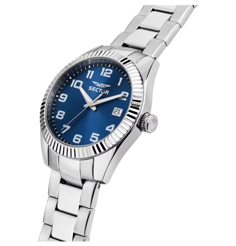 OROLOGIO SECTOR 240 - R3253240019 - Genere : Unisex - Colore Quadrante: Blu, con numeri in metallo - Lancette luminose al buio - Materiale e finitura cassa: Acciaio inox, lucido e satinato - Misura cassa: 39 mm - Spessore cassa: 10 mm - Lunetta: zigrinata in acciaio - Vetro: Minerale - Materiale cinturino: Acciaio - Chiusura: Fibbia diver con blocco di sicurezza - Movimento: Quarzo Giapponese, Solo Tempo, con Data - Water resistant: 5 atm