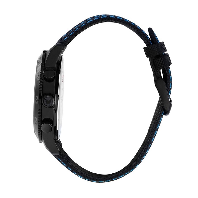 OROLOGIO SECTOR 270 - R3251578013 - Genere : Uomo / Unisex - Movimento: Multifunzione Dual Time, 12/24 h - Colore Quadrante: Nero, con dettagli bianchi e blu - Lancette e numeri luminosi al buio - Materiale e finitura cassa: Acciaio lucido nero Ip black - Fondo cassa: a pressione, in acciaio inox - Ghiera in nero Ip black, con scala 12 ore - Misura cassa: 45 mm - Spessore cassa: 12,50 - Vetro: Vetro minerale - Materiale cinturino: Ecopelle, rivestito gomma - Colore cinturino: Nero - Chiusura: Fibbia ardiglione - Movimento: Quarzo Giapponese - Water resistant: 5 atm