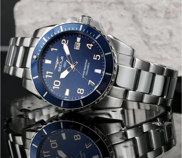 Orologio SECTOR 450 R3253276010 Solo Tempo Data Uomo Acciaio Blu Numeri 10 atm