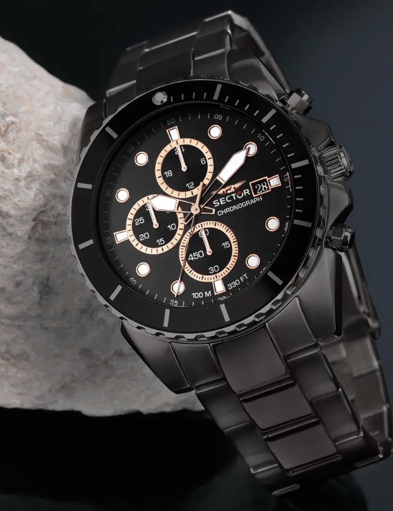 OROLOGIO 450 - R3273776005 - Genere : Uomo - Modello: Cronografo a tre contatori, Data al 3 - Quadrante: Nero, con dettagli color Oro Rosa - Materiale e finitura cassa: Acciaio Ip Black - Misura cassa: 43 mm - Spessore cassa: 11,50 - Finitura cassa: Lucido, Satinato - Colore cassa: Nero - Vetro: Vetro minerale - Materiale cinturino: Acciaio Ip Black - Colore cinturino: Nero - Chiusura: Fibbia diver con blocco sicurezza - Water resistant: 10 atm