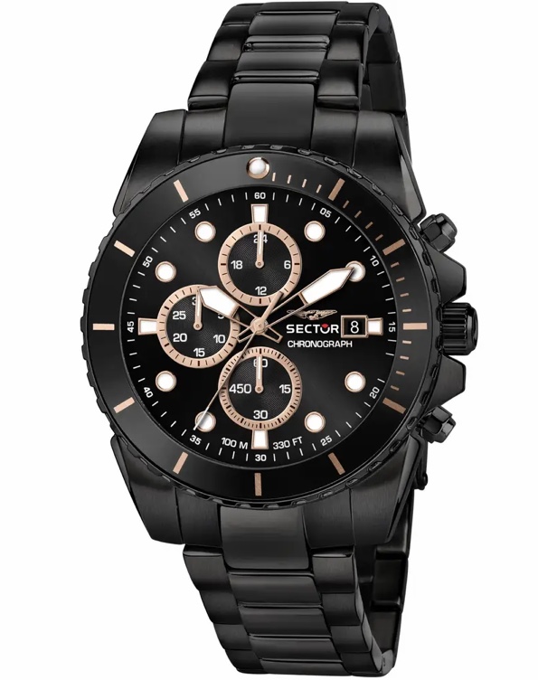 Orologio SECTOR 450 R3273776005 Uomo Cronografo Data Acciaio Nero W.R.10 atm