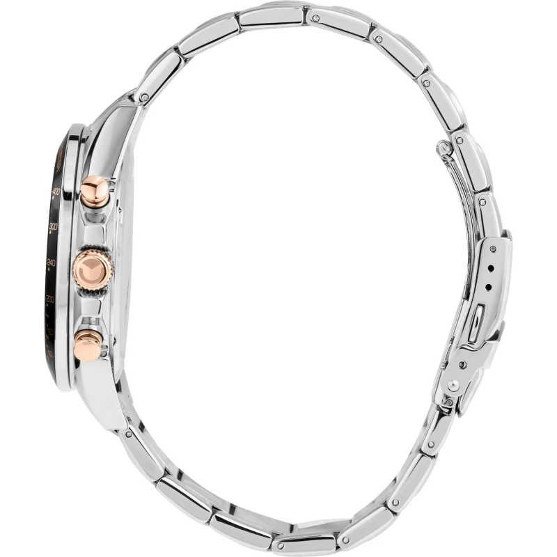 OROLOGIO SECTOR 450 - R3273776007 - Genere : Uomo - Modello: Cronografo, con Data - Materiale e finitura cassa: Acciaio inox, con dettagli Ip color oro rosa - Misura cassa: 43 mm - Spessore cassa: 11,50 - Finitura cassa: Lucido, Satinato - Colore quadrante: Nero, con lancette e indici lumosi al buio e dettagli color oro rosa - Colore cassa: Acciaio inox - Vetro: minerale - Lunetta: Nera, con scala tachimetrica - Materiale bracciale: acciaio inox, con dettagli centrali in Ip color oro rosa - Chiusura: Fibbia Diver con pulsanti e blocco sicurezza - Water resistant: 10 atm