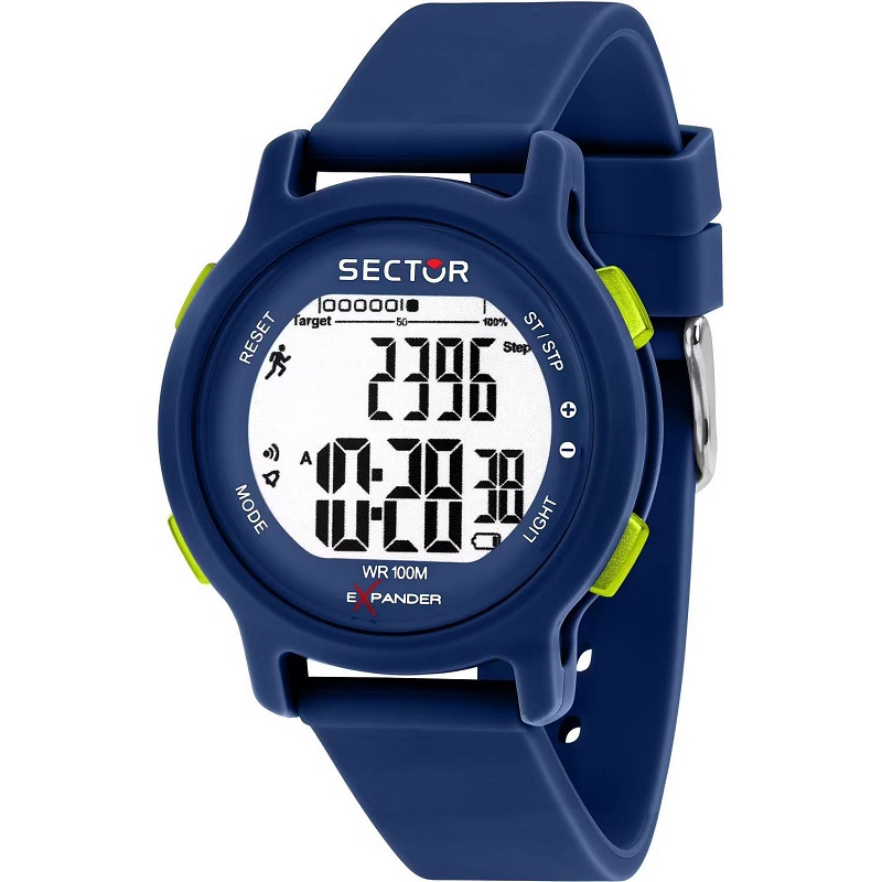 OROLOGIO SECTOR EX-27 - R3251191002 - Genere: Uomo / Unisex - Movimento: Digitale Multifunzione (Funzioni: Pedometro, Allarme, Conto alla rovescia, Luce) - Materiale e finitura cassa: Policarbonato opaco - Colore Cassa: Blu - Fondo cassa: a 4 viti, in acciaio inox - Misura cassa: 43 mm - Spessore cassa: 12,00 - Vetro: Acrilico - Materiale cinturino: Poliuretano - Colore cinturino: Blu - Chiusura: Fibbia ardiglione, in acciaio - Movimento: Quarzo Giapponese - Water resistant: 5 atm
