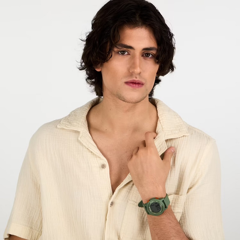 OROLOGIO SECTOR EX-27 - R3251191004 - Genere: Uomo / Unisex - Movimento: Digitale Multifunzione (Funzioni: Pedometro, Allarme, Conto alla rovescia, Luce) - Materiale e finitura cassa: Policarbonato opaco - Colore Cassa: Verde militare - Colore Pulsanti: Arancione - Fondo cassa: a 4 viti, in acciaio inox - Misura cassa: 43 mm - Spessore cassa: 12,00 - Vetro: Acrilico - Materiale cinturino: Poliuretano - Colore cinturino: Verde militare - Chiusura: Fibbia ardiglione, in acciaio - Movimento: Quarzo Giapponese - Water resistant: 5 atm