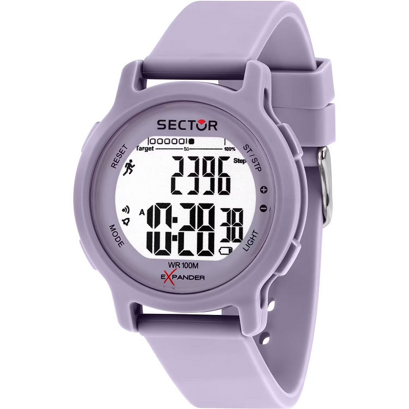 OROLOGIO SECTOR EX-27 - R3251191501 - Genere: Uomo / Unisex - Movimento: Digitale Multifunzione (Funzioni: Pedometro, Allarme, Conto alla rovescia, Luce) - Materiale e finitura cassa: Policarbonato opaco - Colore Cassa: Lilla Viola - Fondo cassa: a 4 viti, in acciaio inox - Misura cassa: 43 mm - Spessore cassa: 12,00 - Vetro: Acrilico - Materiale cinturino: Poliuretano - Colore cinturino: Lilla Viola - Chiusura: Fibbia ardiglione, in acciaio - Movimento: Quarzo Giapponese - Water resistant: 5 atm