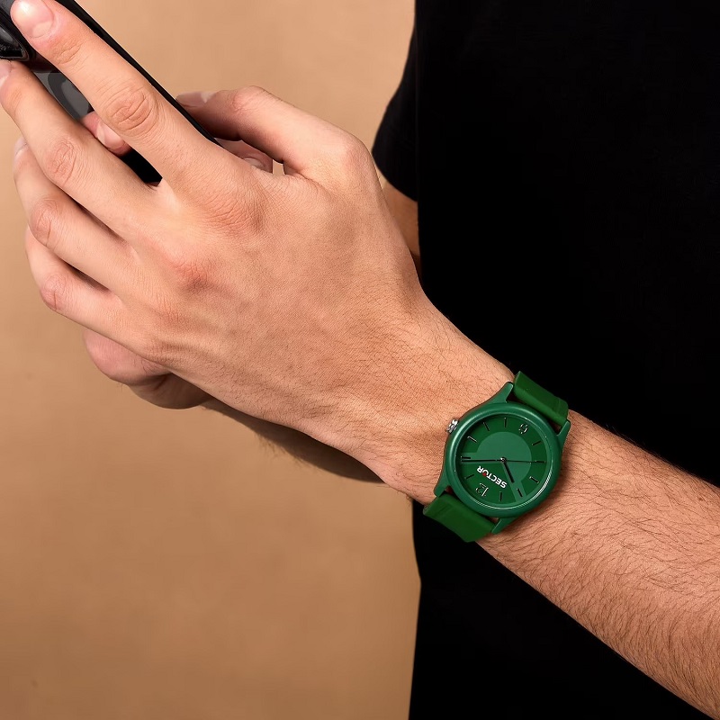 OROLOGIO SECTOR EX-Q - R3251203004 - Genere: Uomo / Unisex - Movimento: Solo Tempo a 3 Sfere - Colore Quadrante: Verde, personalizzato con Logo Sector - Lancette e indici in metallo lucido - Materiale e finitura cassa: Policarbonato opaco - Fondo cassa: a 4 viti, in acciaio inox - Misura cassa: 41 mm - Spessore cassa: 11,00 - Vetro: Acrilico - Materiale cinturino: Silicone - Colore cinturino: Verde - Chiusura: Fibbia ardiglione, in acciaio - Movimento: Quarzo Giapponese - Water resistant: 5 atm