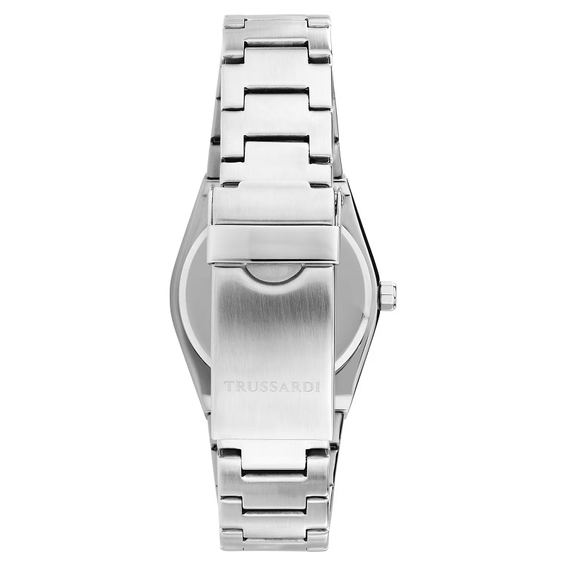 OROLOGIO TRUSSARDI "T-MILANO" - R2453175503 - Genere: Donna - Materiale e finitura cassa: Acciaio lucido e satinato - Misura cassa: 34 mm - Spessore cassa: 9 mm - Colore cassa: Silver - Vetro: Vetro minerale - Quadrante: Viola Lilla, cristalli agli indici, lancette e dettagli in metallo rosé - Materiale bracciale: Acciaio inox - Colore cinturino: Silver - Chiusura: Fibbia diver con blocco sicurezza - Movimento: Quarzo giapponese a tre sfere, con data - Water resistant: 5 atm - Garanzia: Ufficiale 2 anni Trussardi.