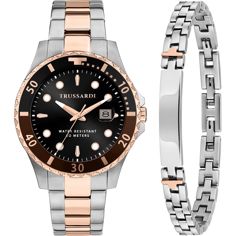 Set Box Orologio Bracciale TRUSSARDI CITY LIFE R2453169001 Uomo Acciaio 5 atm