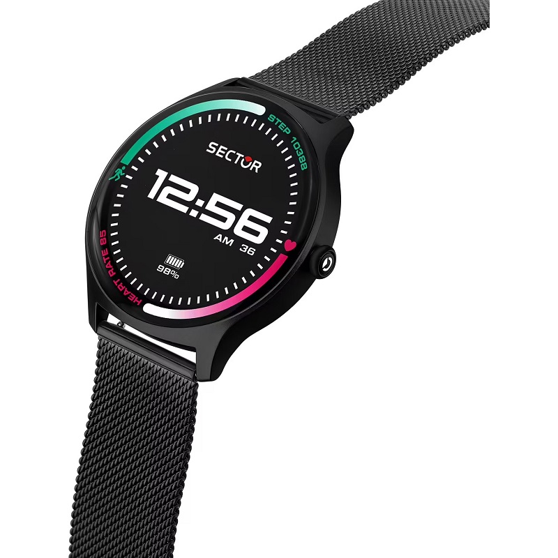 • Materiali: Smartwatch Sector in alluminio, con cinturino in acciaio nero IP black