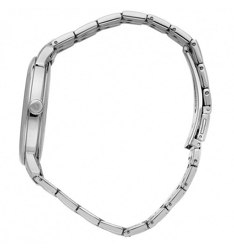 Orologio Trussardi da uomo, con movimento al quarzo giapponese e funzioni di solo tempo, a tre sfere - Cassa rotonda, in acciaio inox, diametro di 41 mm e spessore di 7,8 mm - Quadrante analogico nero, con logo a ore 12, indici a bastoni e lancette silver - Bracciale in acciaio anallergico color argento - Chiusura deployante con pulsanti - Resistente all'acqua fino a 5 atm.